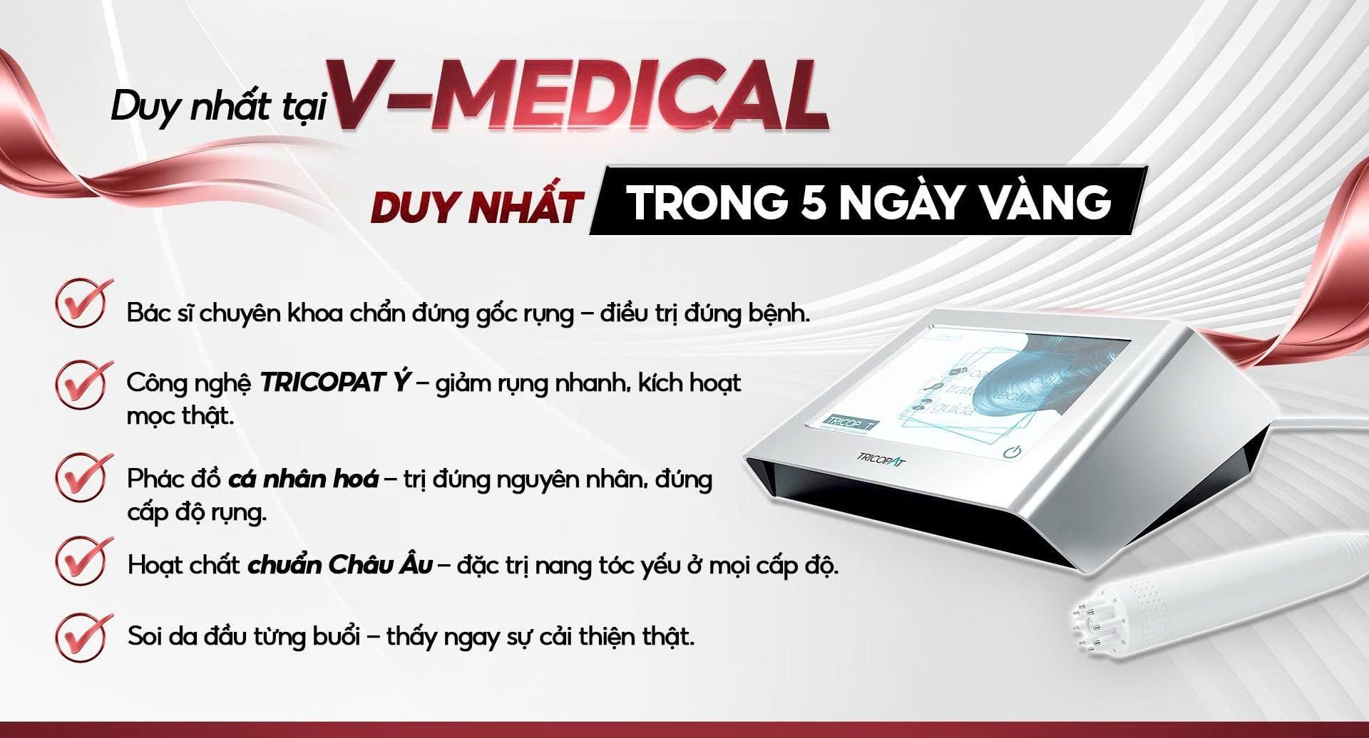 V-Medical Clinic không đặt mục tiêu “làm nhanh”, mà hướng đến kết quả bền vững và sự an tâm lâu dài cho khách hàng. Nếu bạn đang tìm kiếm một giải pháp nghiêm túc để lấy lại mái tóc dày khỏe, hãy dành thời gian đến V-Medical để được bác sĩ trực tiếp thăm khám và tư vấn, bởi hành trình thay đổi luôn cần bắt đầu từ một quyết định đúng đắn.