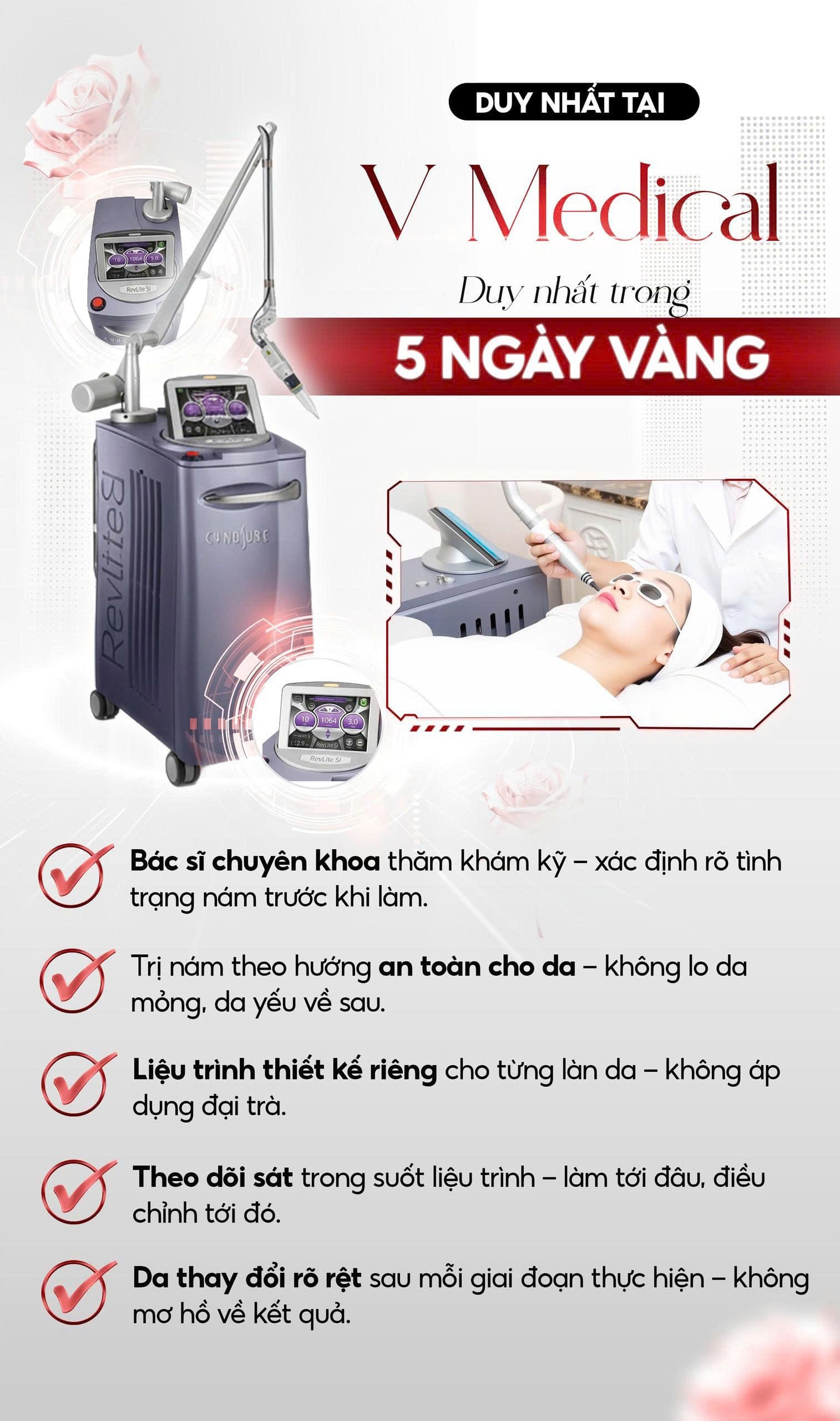 V-Medical cho em hỏi công nghệ Revlite này có trị nám dứt điểm không, sau sinh em bị nám nội tiết – Tư vấn qua FB Cẩm Chi cho em nhé em có gửi tin nhắn bên page của V-Medical